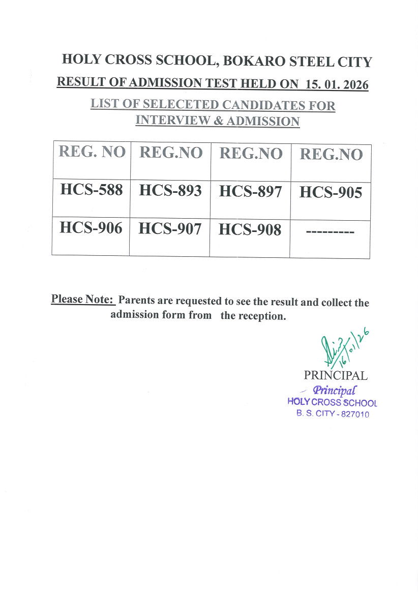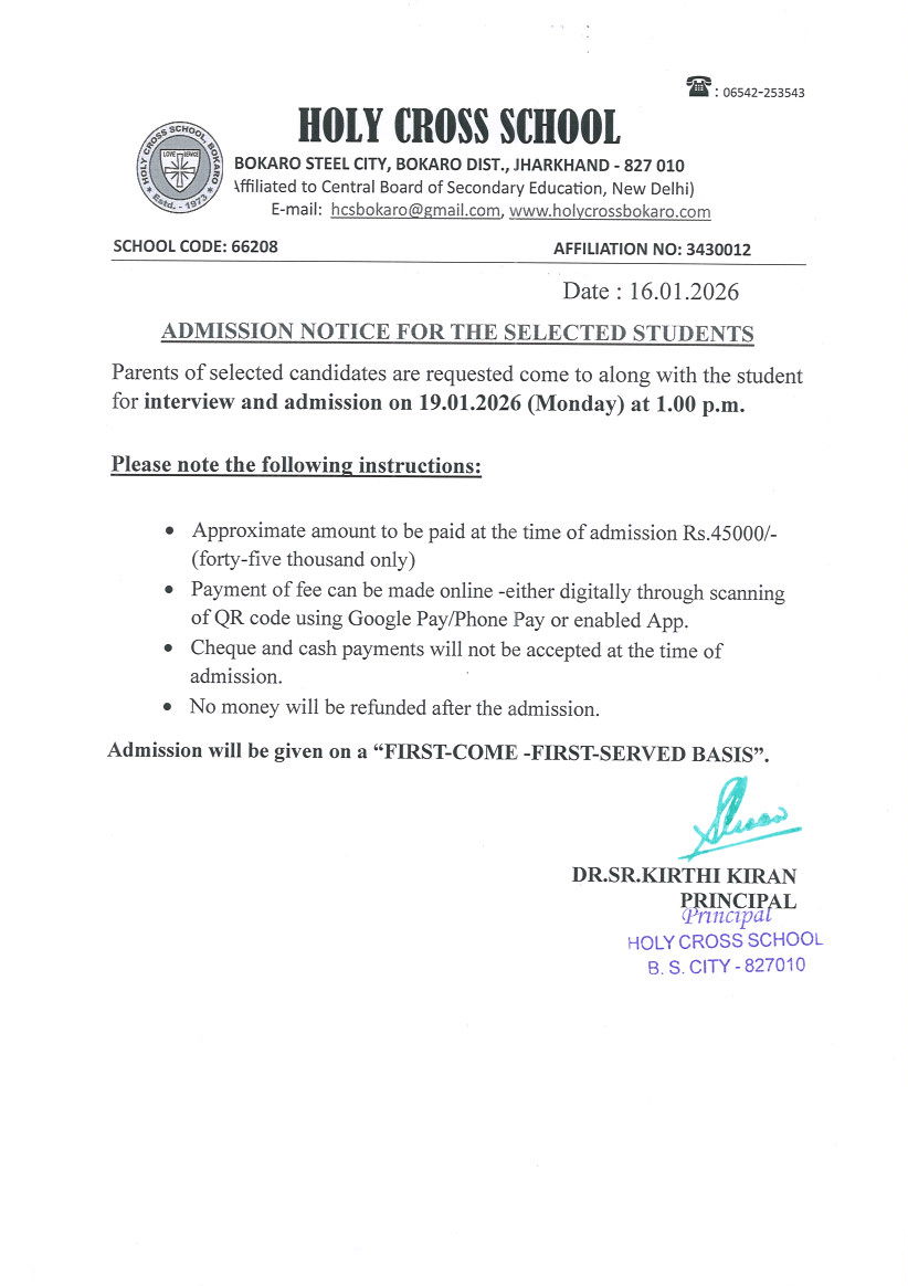 Holy Cross School, Bokaro Steel City, is a Christian Minority School founded in 1974 and managed by the members of the International Christian Women Religious Congregation known as Sisters of Mercy of Holy Cross . Fr. Theodosius Florentini OFM CAP and Mother Maria Theresa Scherer founded this congregation in Switzerland in the year 1856. The school aims at developing the students in totality, to make him/her a perfect creation of God. Top priority is given to character building on sound moral principles. Read More
