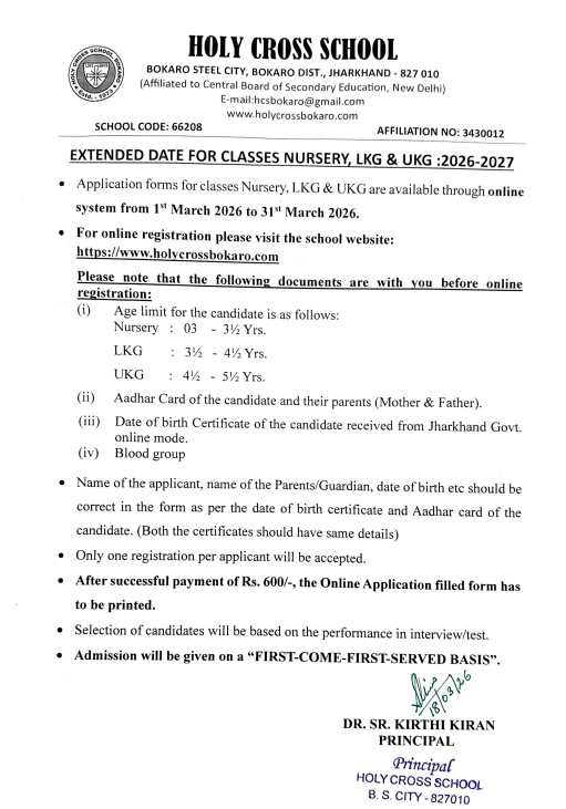 Holy Cross School, Bokaro Steel City, is a Christian Minority School founded in 1974 and managed by the members of the International Christian Women Religious Congregation known as Sisters of Mercy of Holy Cross . Fr. Theodosius Florentini OFM CAP and Mother Maria Theresa Scherer founded this congregation in Switzerland in the year 1856. The school aims at developing the students in totality, to make him/her a perfect creation of God. Top priority is given to character building on sound moral principles. Read More